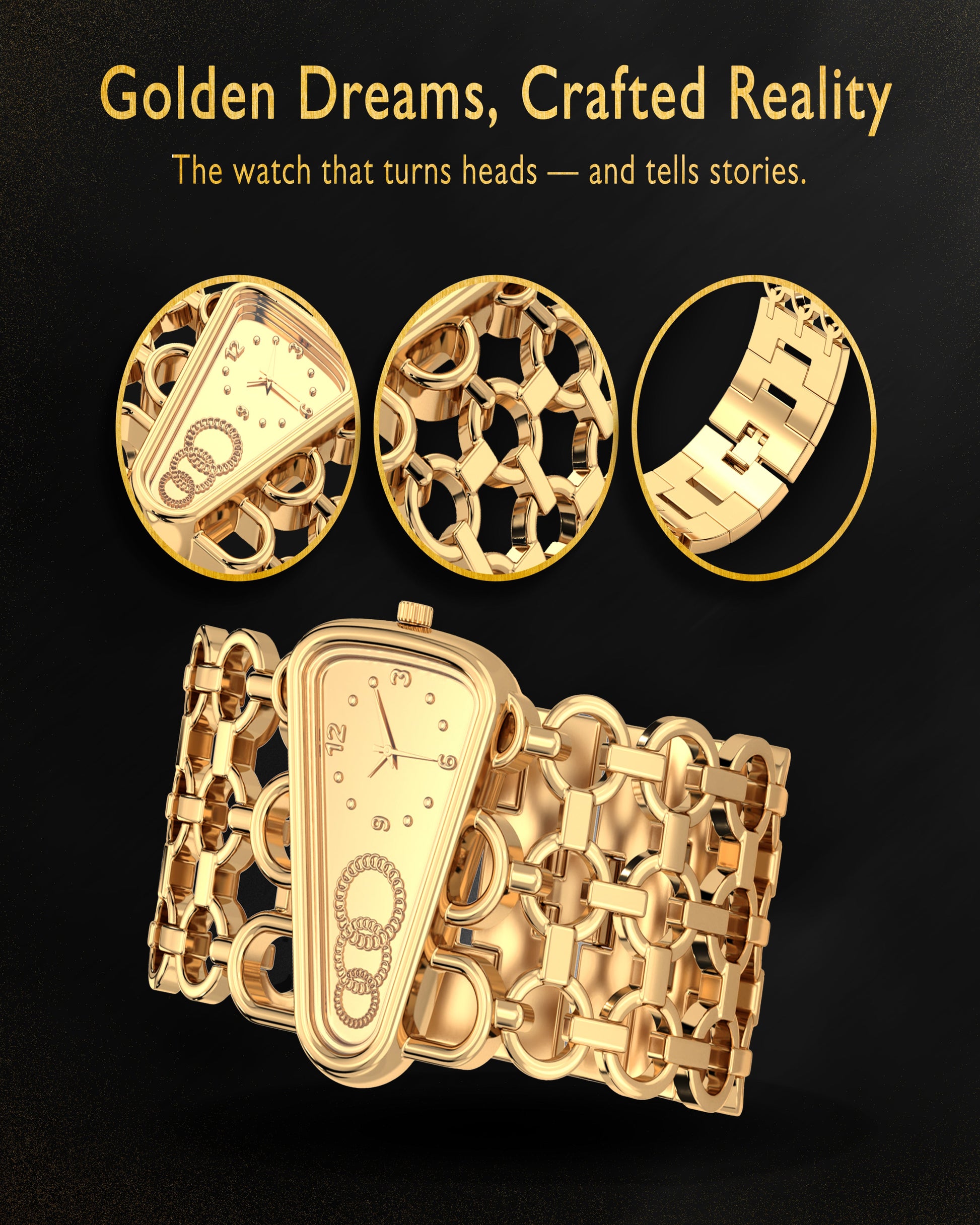 Step into luxury with the Grandeur Handcrafted Gold Watch, a statement piece that blends artistic craftsmanship with regal charm. Designed for women who value elegance, detail, and grace — this watch is more than just a timepiece, it's a keepsake.